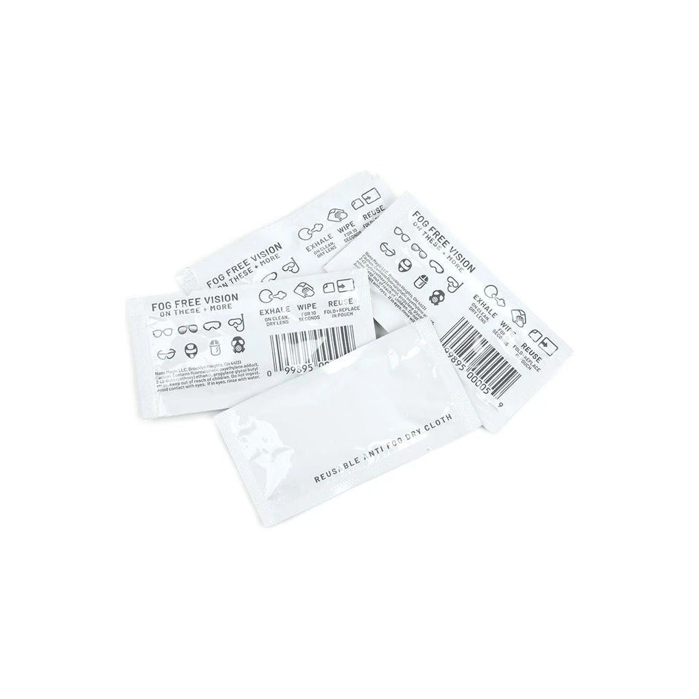 Our easy-to-use, super-effective Anti-Fog Dry Cloths are the perfect thing for those pesky fogged-up lenses. One pack includes 10 reusable cloths, baked with anti-fog formula with up to 10 applications each. To use, exhale deeply on lenses to leave a foggy moisture. Wait 2 minutes. Rub the cloth on the moisture to “activate” the compound on the dry wipe. Fold and replace the wipe into the remaining foil for future use and voila! Fog-free lenses!