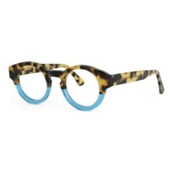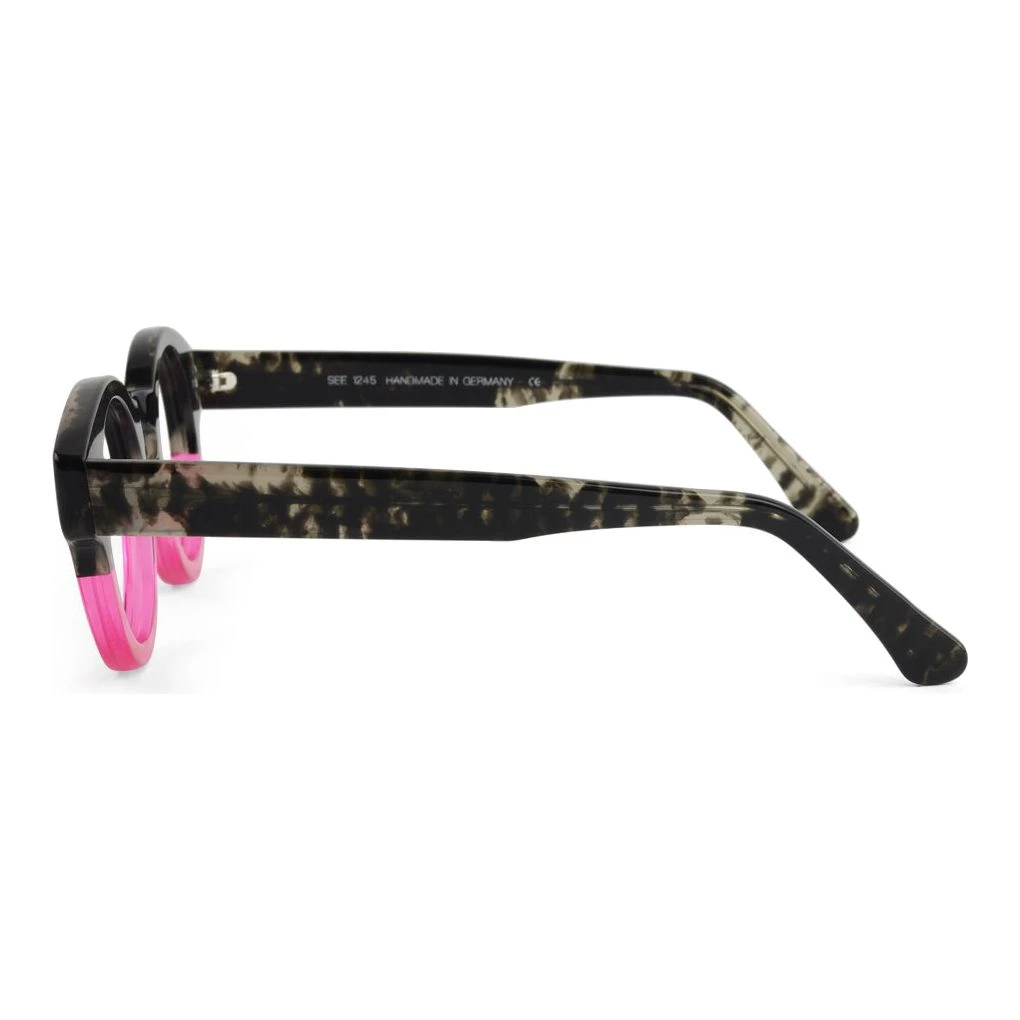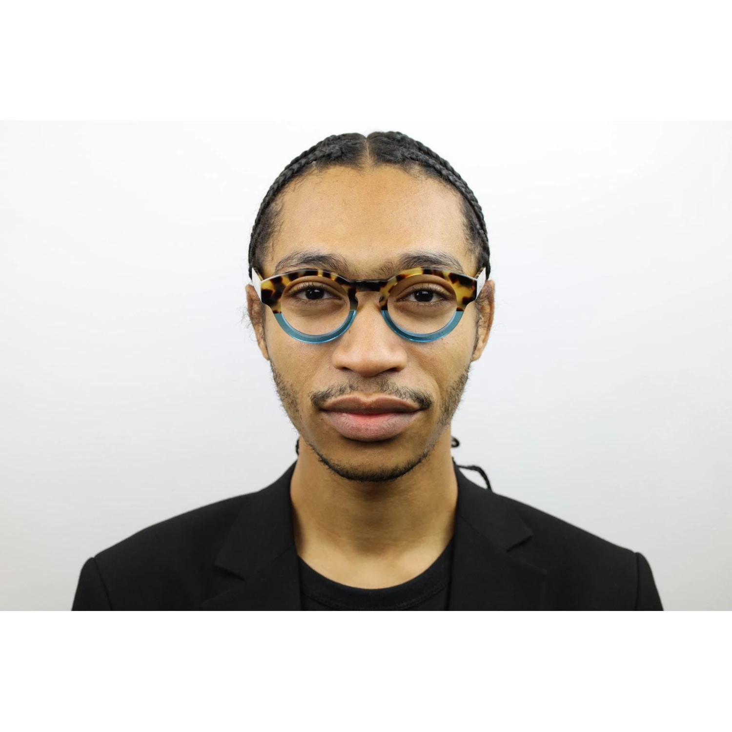 We know you love a two-tone German frame (same) and this one’s a goodie. SEE 1254 is brought to you by one of our most-loved Deutschland artisans, pairing a classic round shape with interesting torts and bright color pops.