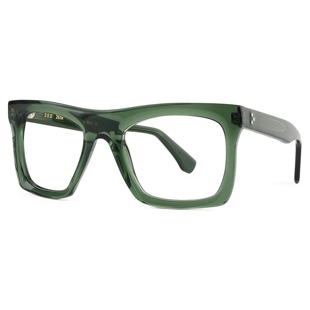 A simplistic frame with a modern edge, SEE 2656 comes complete with beveled eye rims and a retro triple-rivet detail. Look a bit closer at the translucent options, and you’ll notice an artfully etched core wire. Yes, those Italian artisans did think of everything.