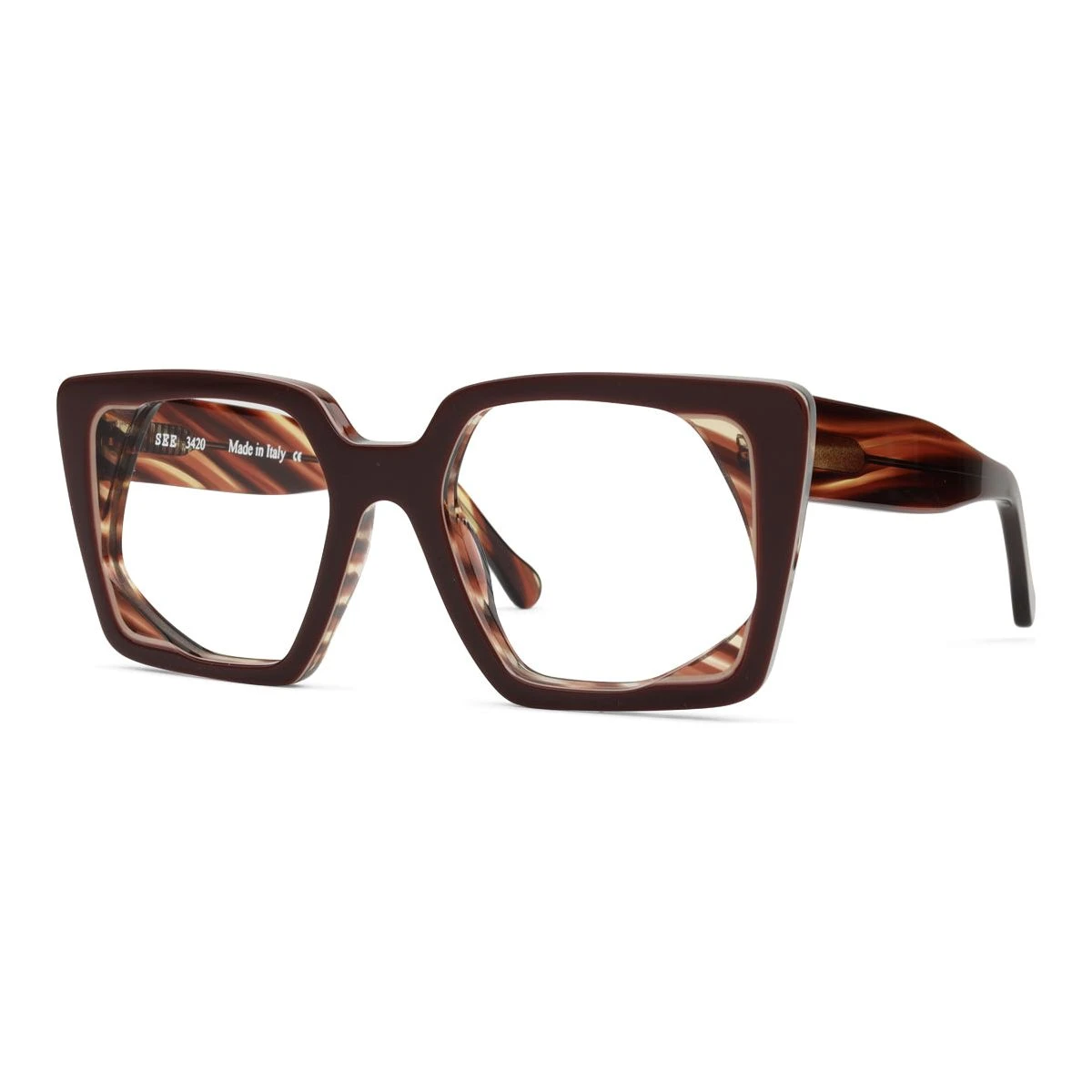 Looking to be the envy of all other glasses wearers? Well, the search is over, friend. SEE 3420 was handcrafted in Italy using laminated acetate, then milled down to create the outstanding two-toned detail that stands before you today.