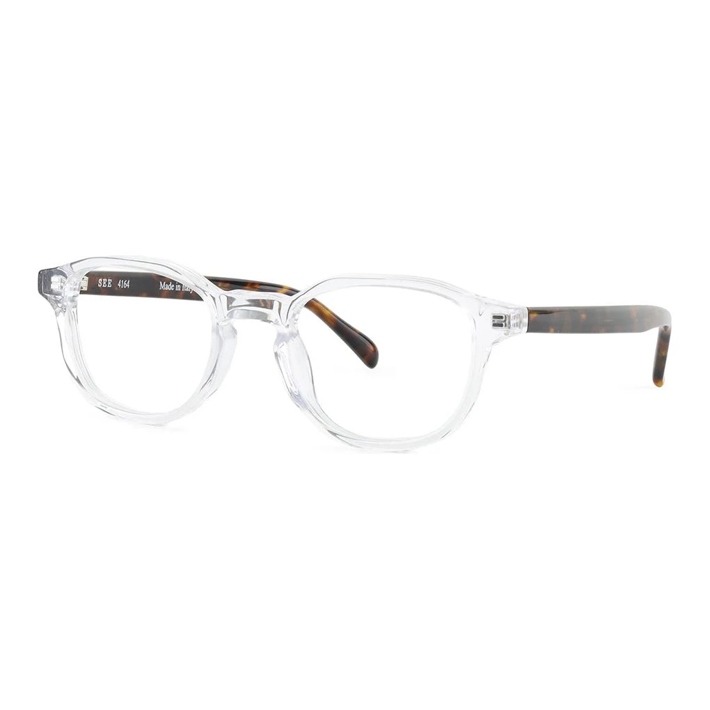 This petite Italian-made style is a classic with a bit of a twist. The angular shape, keyhole bridge, contrasting temples, and interesting color palette make this style molto interessante.