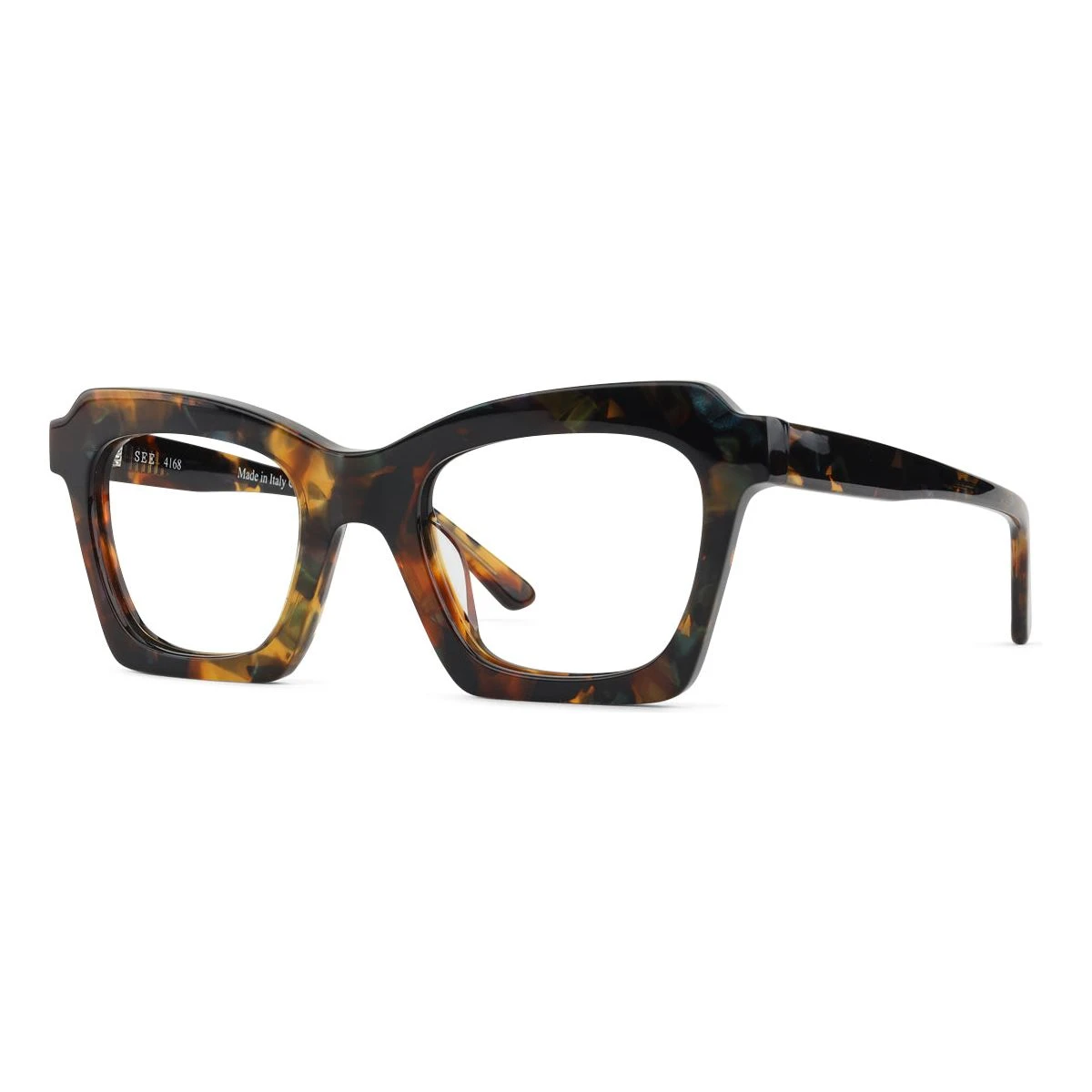 SEE 4168 is giving big glam energy with four shades of iridescent acetate and a subtly angular cat-eye shape. The head-turning, pearly tort will surely have you scoring compliments galore.