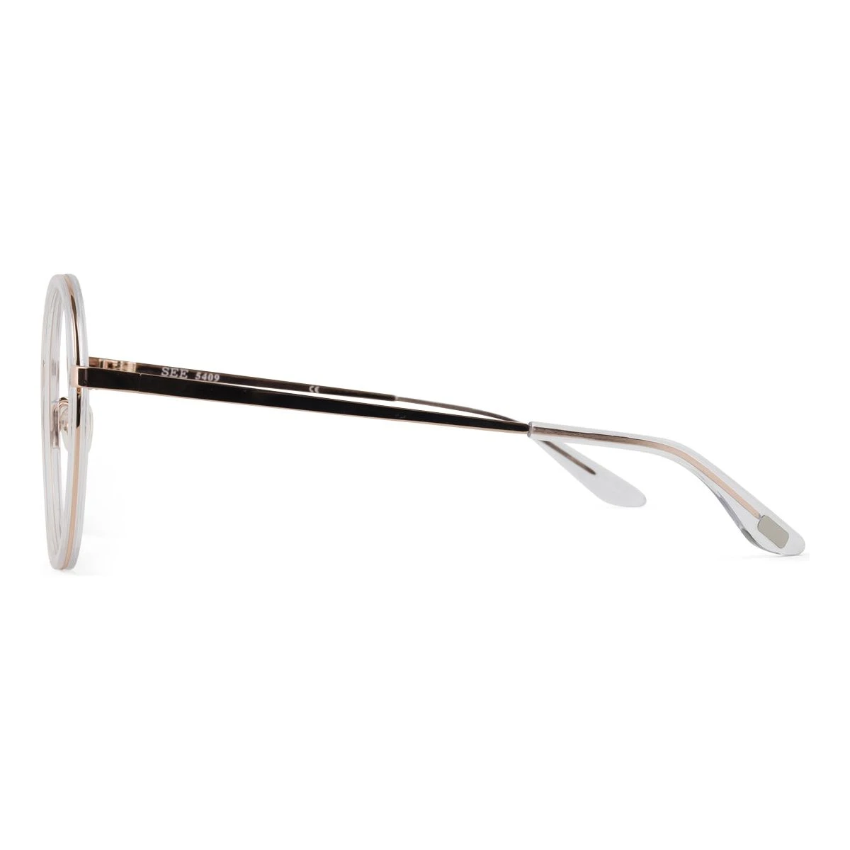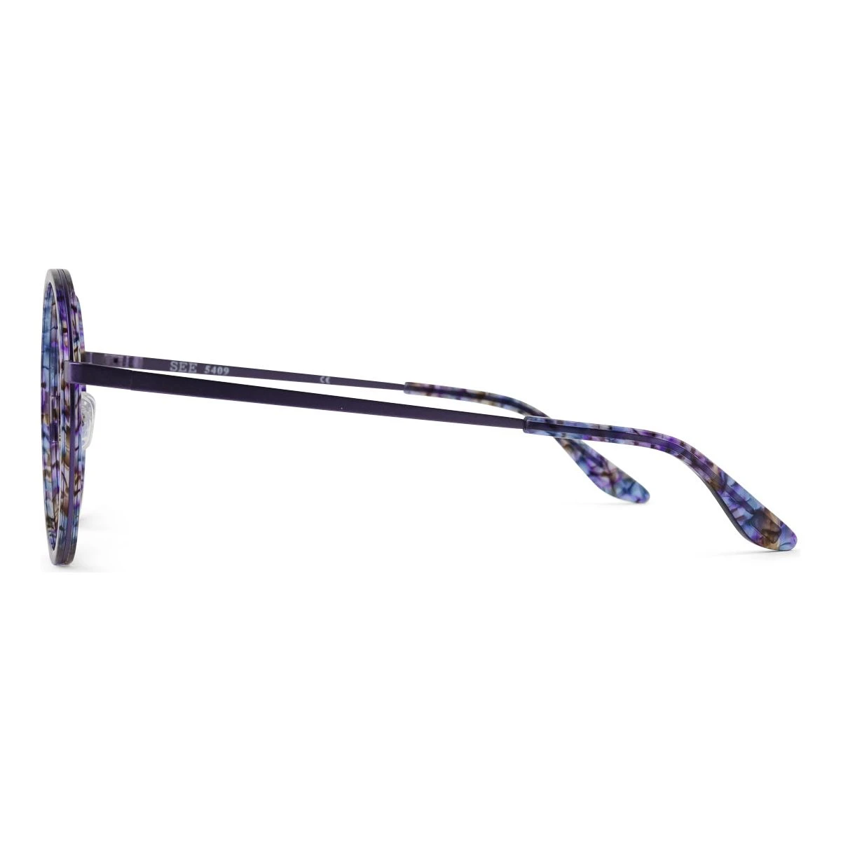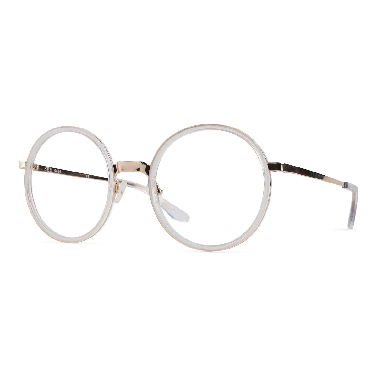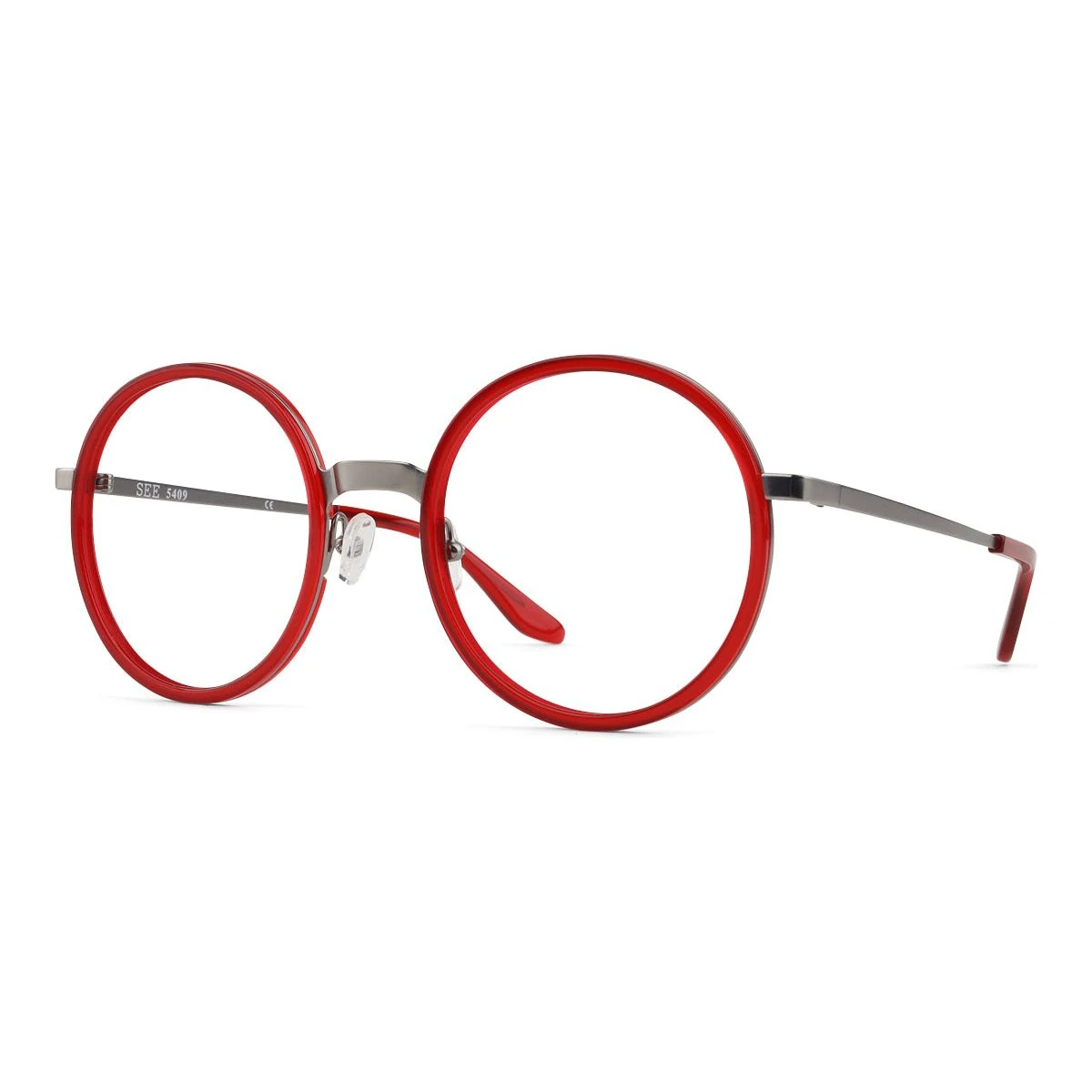 SEE 5409 combines an oversized, round shape with custom-colored metal and charismatic acetate, making for a frame with a big personality.