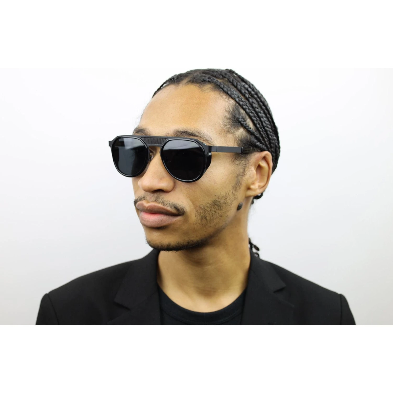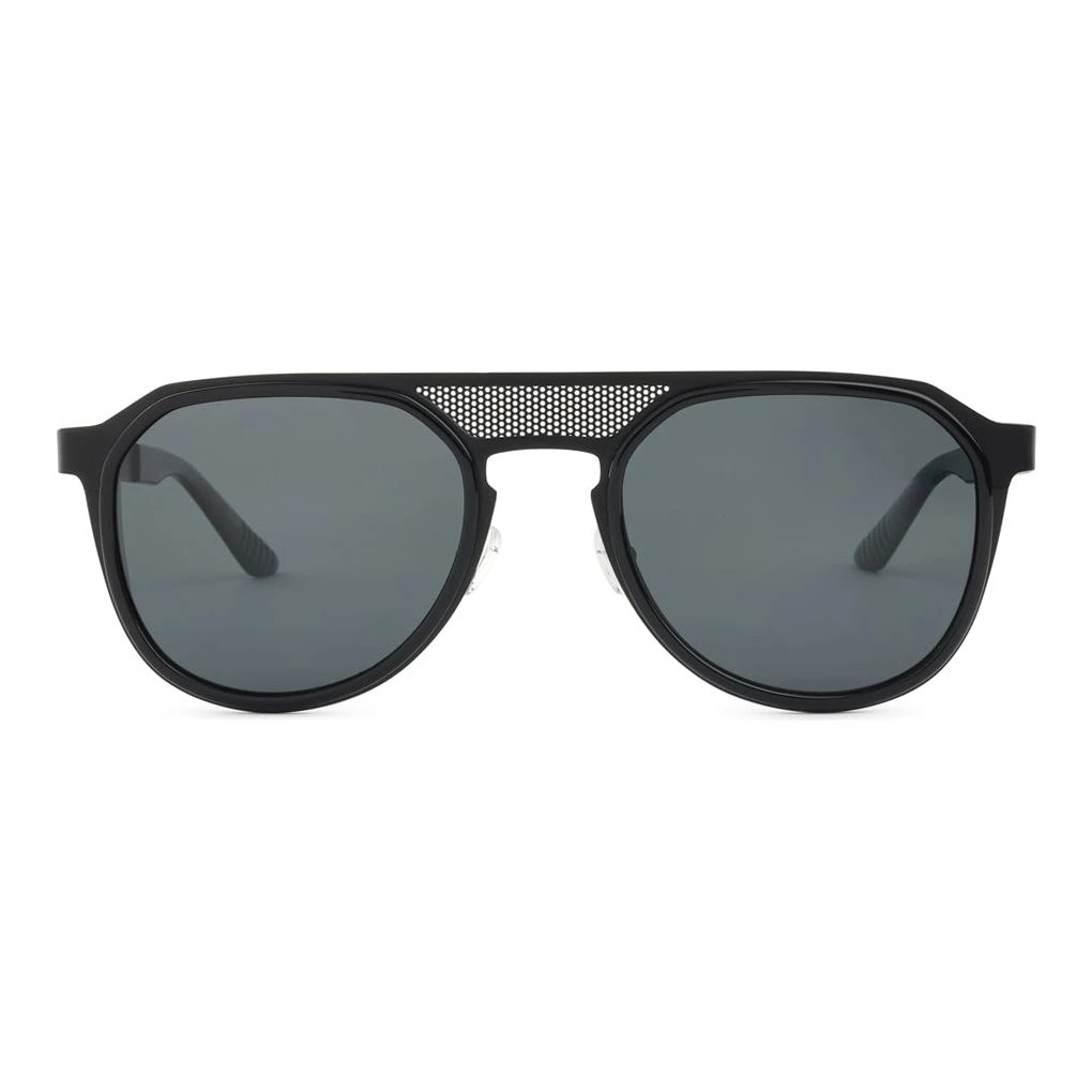 This ultramodern sunnie makes a statement in mixed materials and features an attention-grabbing laser-etched brow bar detail, exaggerated keyhole bridge, and ever-so-stylish side shields. Oh, and did we mention the lenses are polarized?