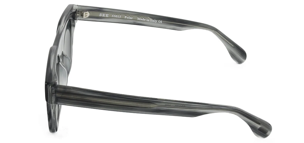 Ladies and gents—can we get a drumroll please? We are pleased as punch to introduce SEE 550015 to the Trunk Show roundup. Yes, the shape is timeless, but the details are out of this world. Peep that milled down, matted out eye rim and bridge detail. The laser etched temple grips. And oh, that’s right. Polarized lenses!