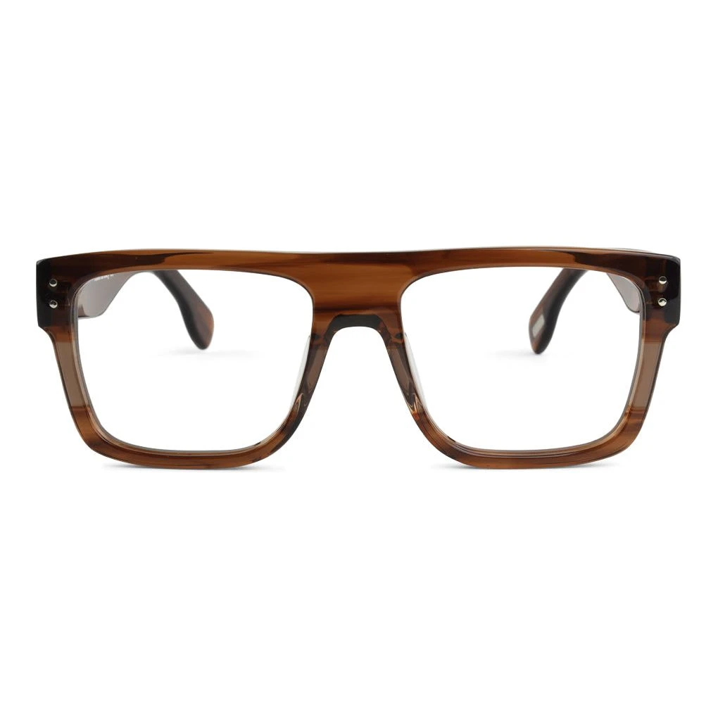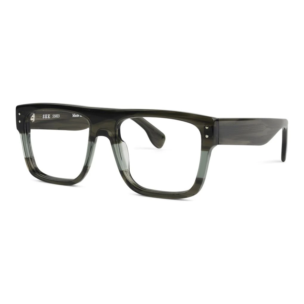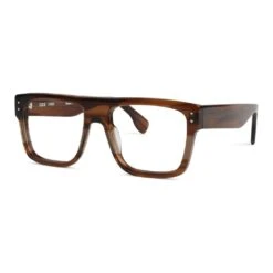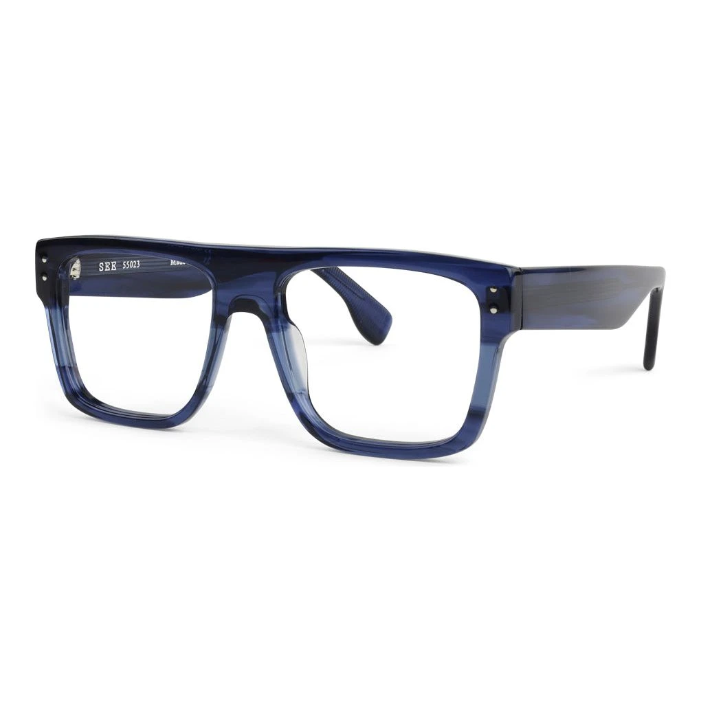 Italian-made with style in mind, SEE 55023 perfectly exemplifies the bold, daring look of this season’s Flat Top trend. The hefty, subtly striped acetate makes a statement, while the comfy built-in nose pads and ribbed temple tips make this frame the perfect mix of fashion and function.