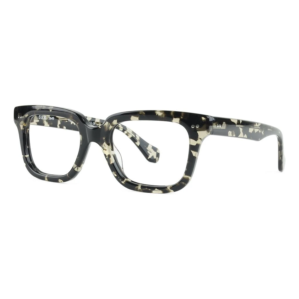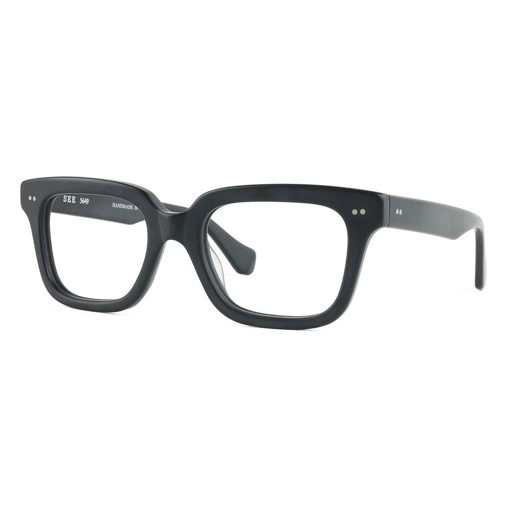 Sturdy and striking, SEE 5649 is a vintage-inspired shape with a decidedly unique color palette. Handmade in Japan, these babies are fire. Don’t want to take our word for it? Check them out on the models below. We tried to get our office dog to wear them but he was feeling a little upitty and wouldn’t sign a photo release.