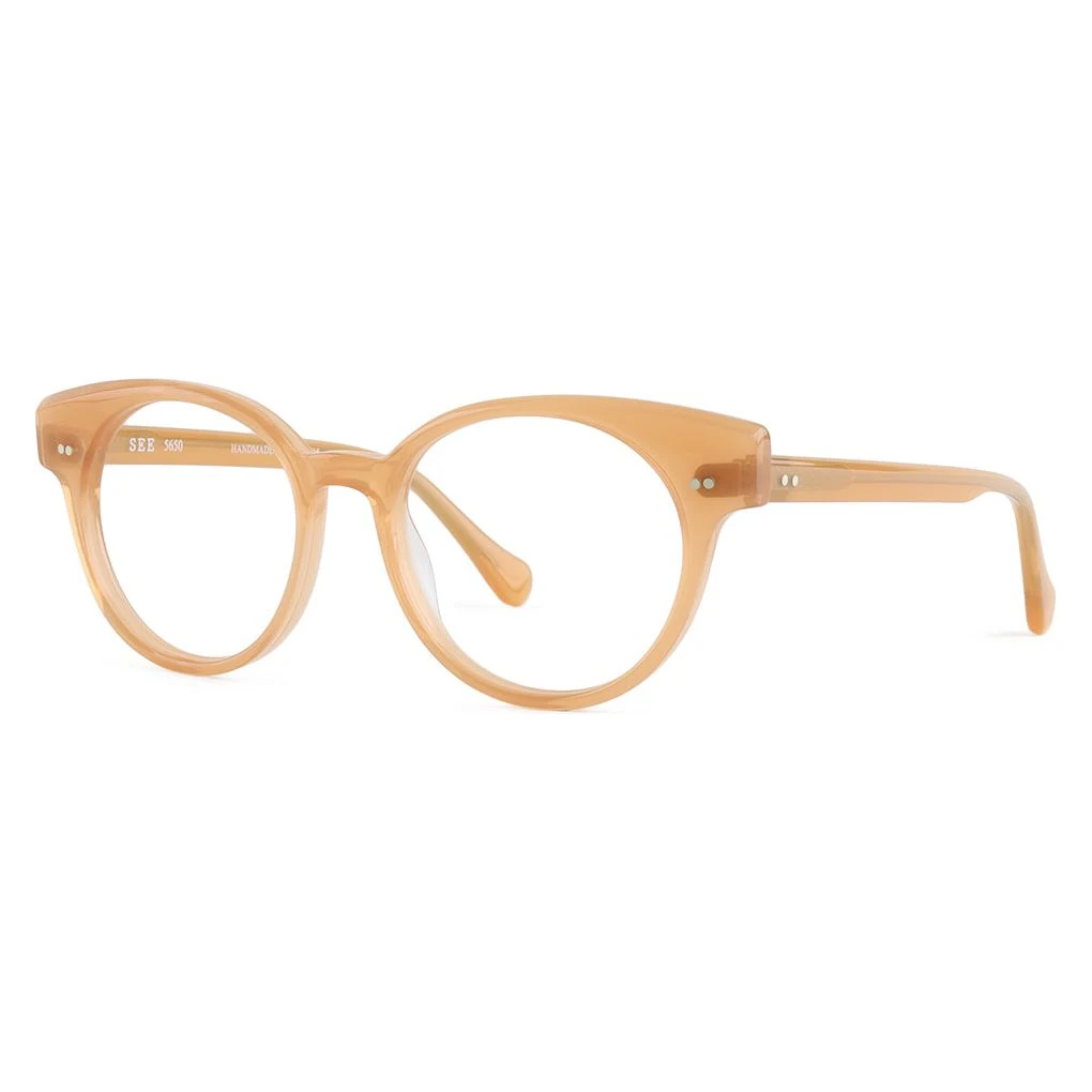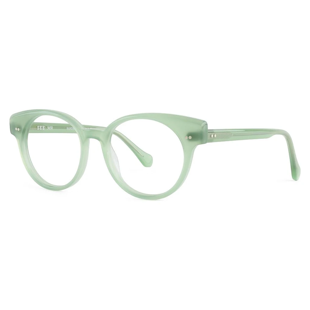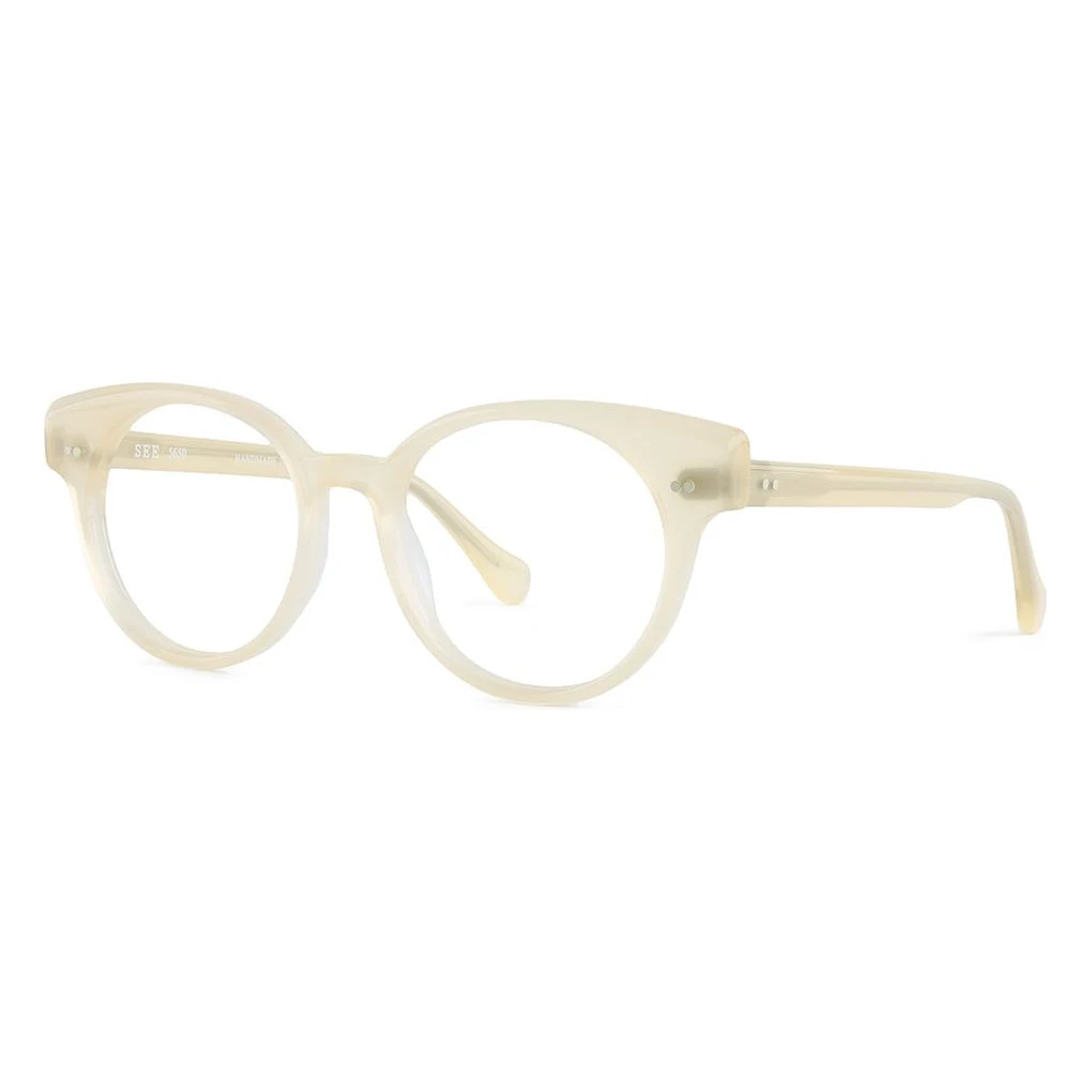 This delicate, classic style was handmade in Japan using a posh, milky, earth toned color palette. SEE 5650 is an easy to wear round frame with dual horizontal rivets flanking each side. It may look delicate, but 5650 has style for miles.