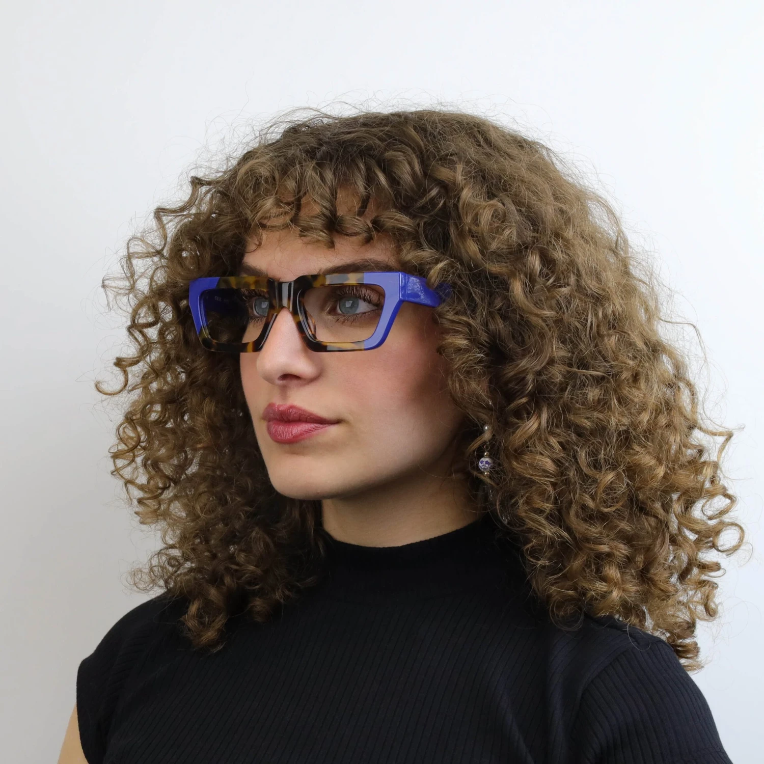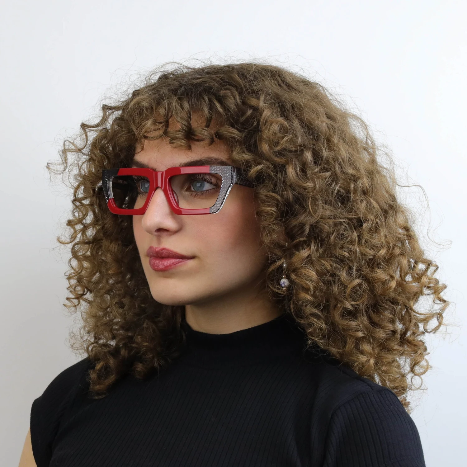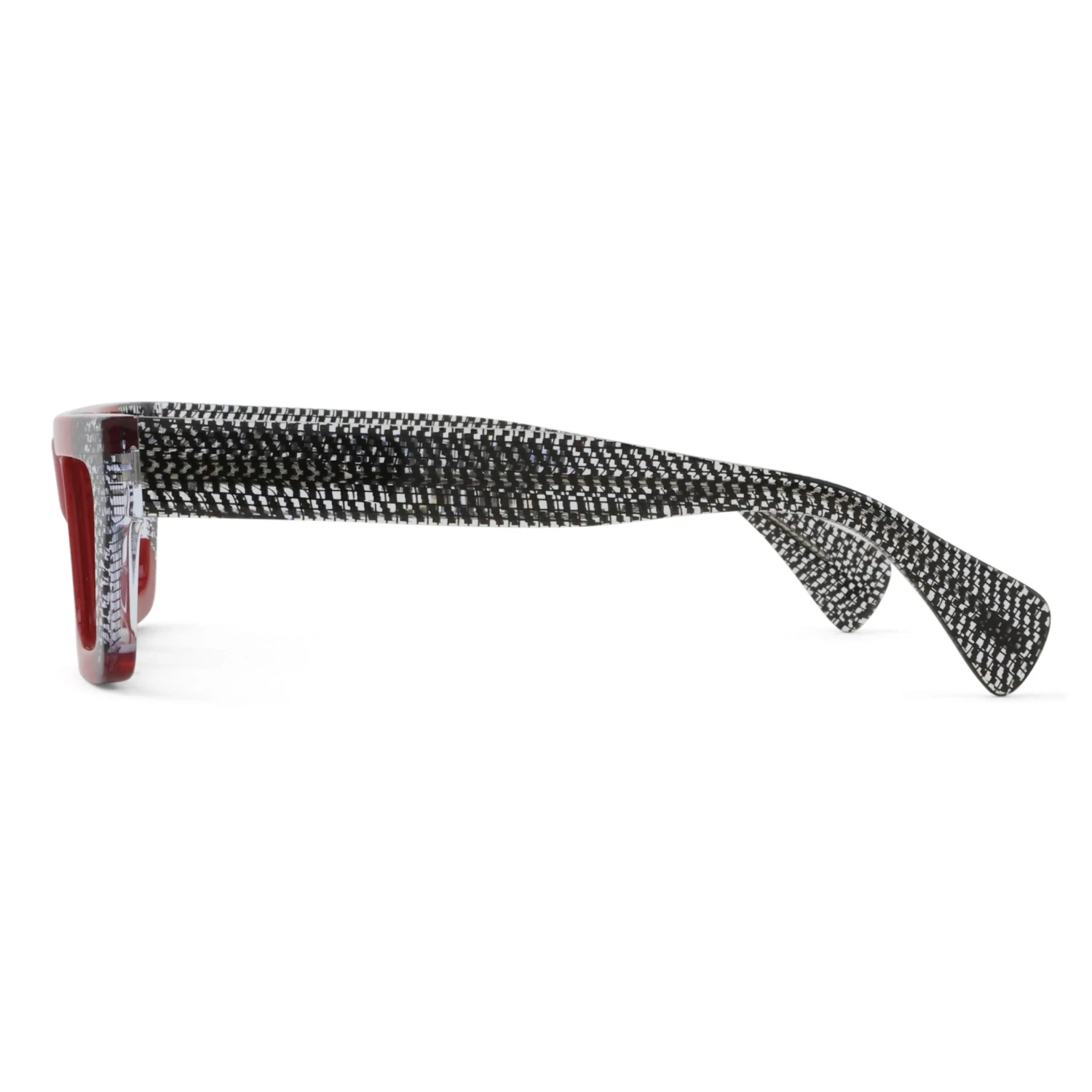 This playful, modern frame combines pop colors with funky patterned acetate, making for a frame that earns its place in the Sexy Specs lineup.