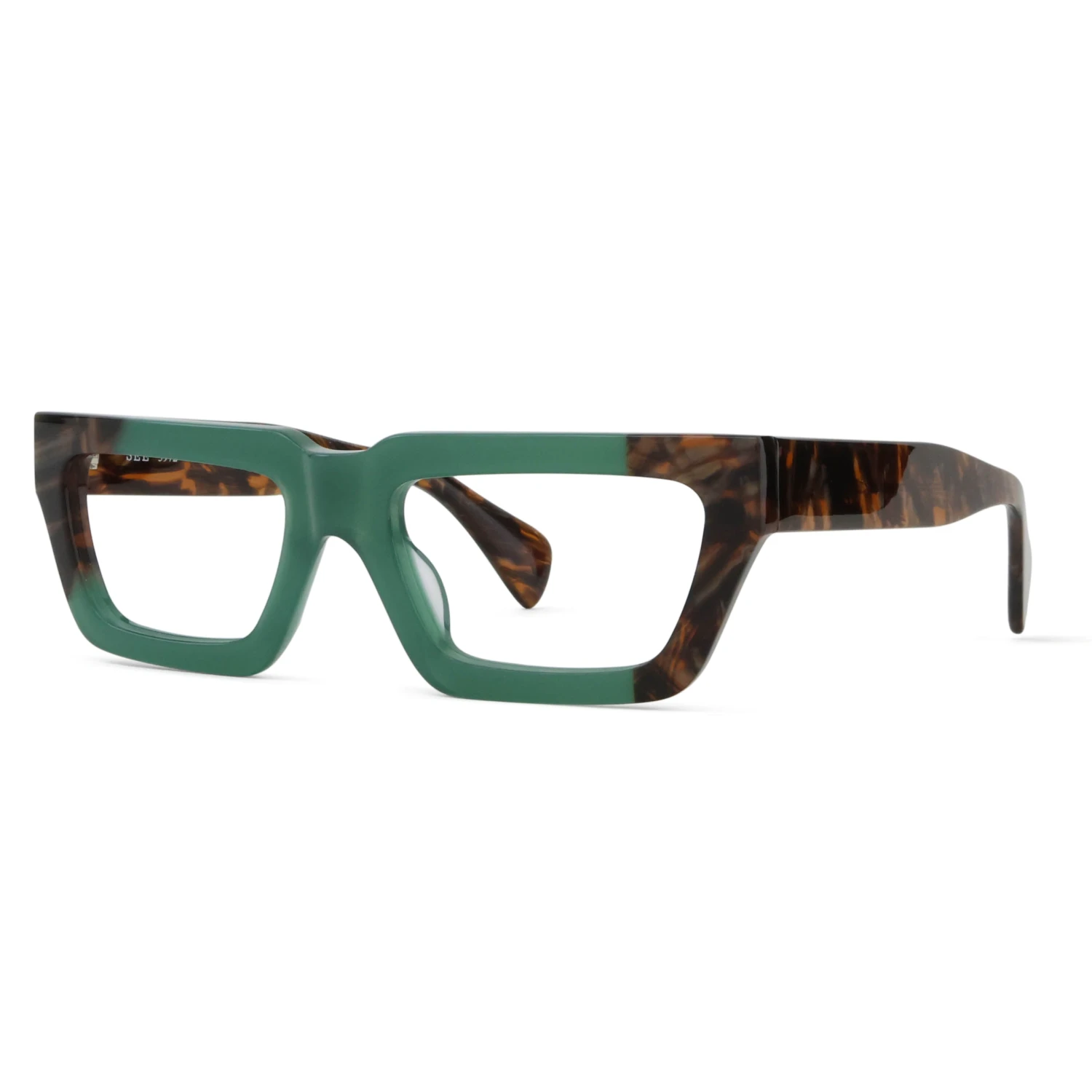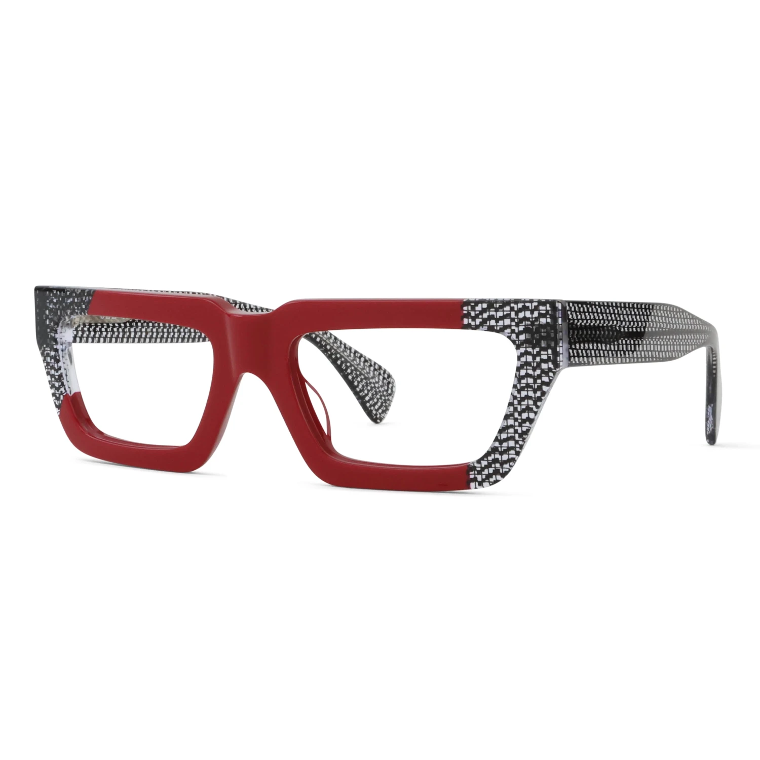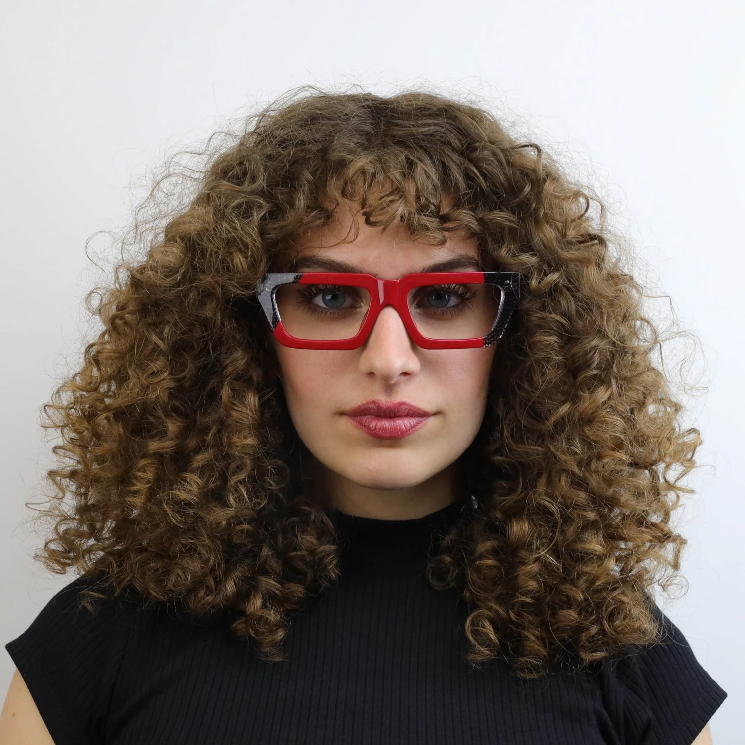 This playful, modern frame combines pop colors with funky patterned acetate, making for a frame that earns its place in the Sexy Specs lineup.
