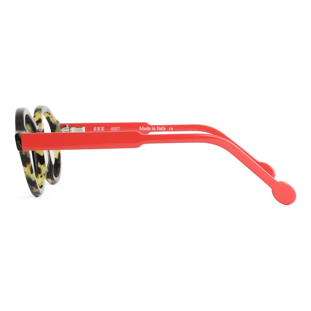 Part of our new Petite Collection, SEE 6057 brings the style in a fun-sized, Italian-made frame. Its funky take on a round shape, paired with an eclectic mix of torts and pop colors, makes this little number a real showstopper.