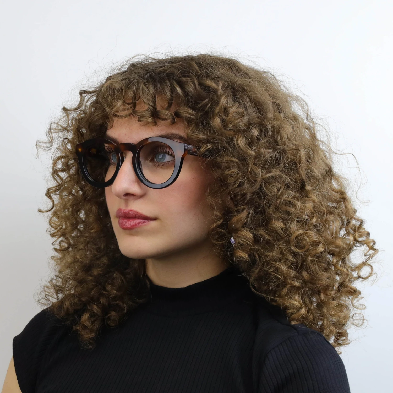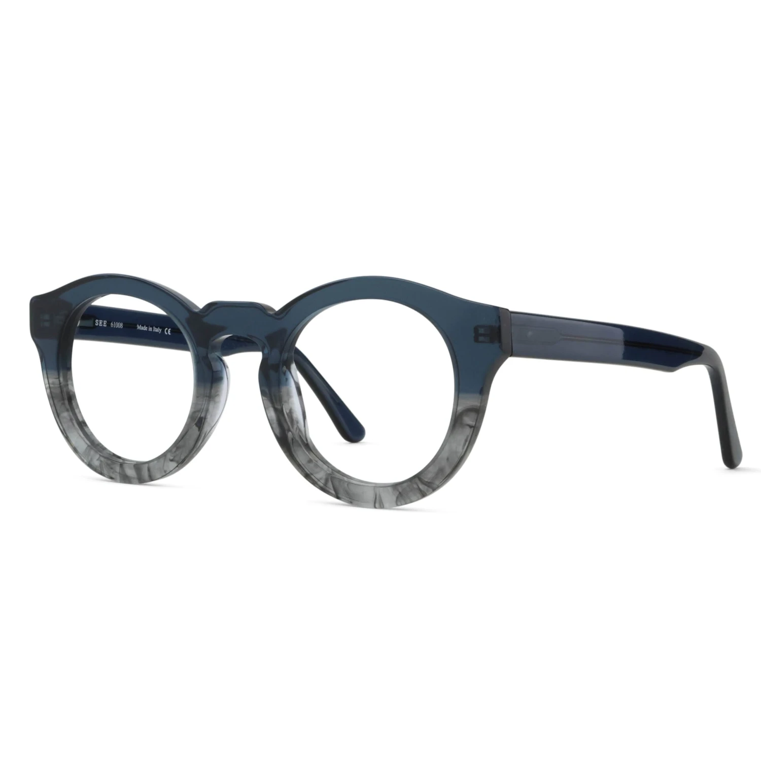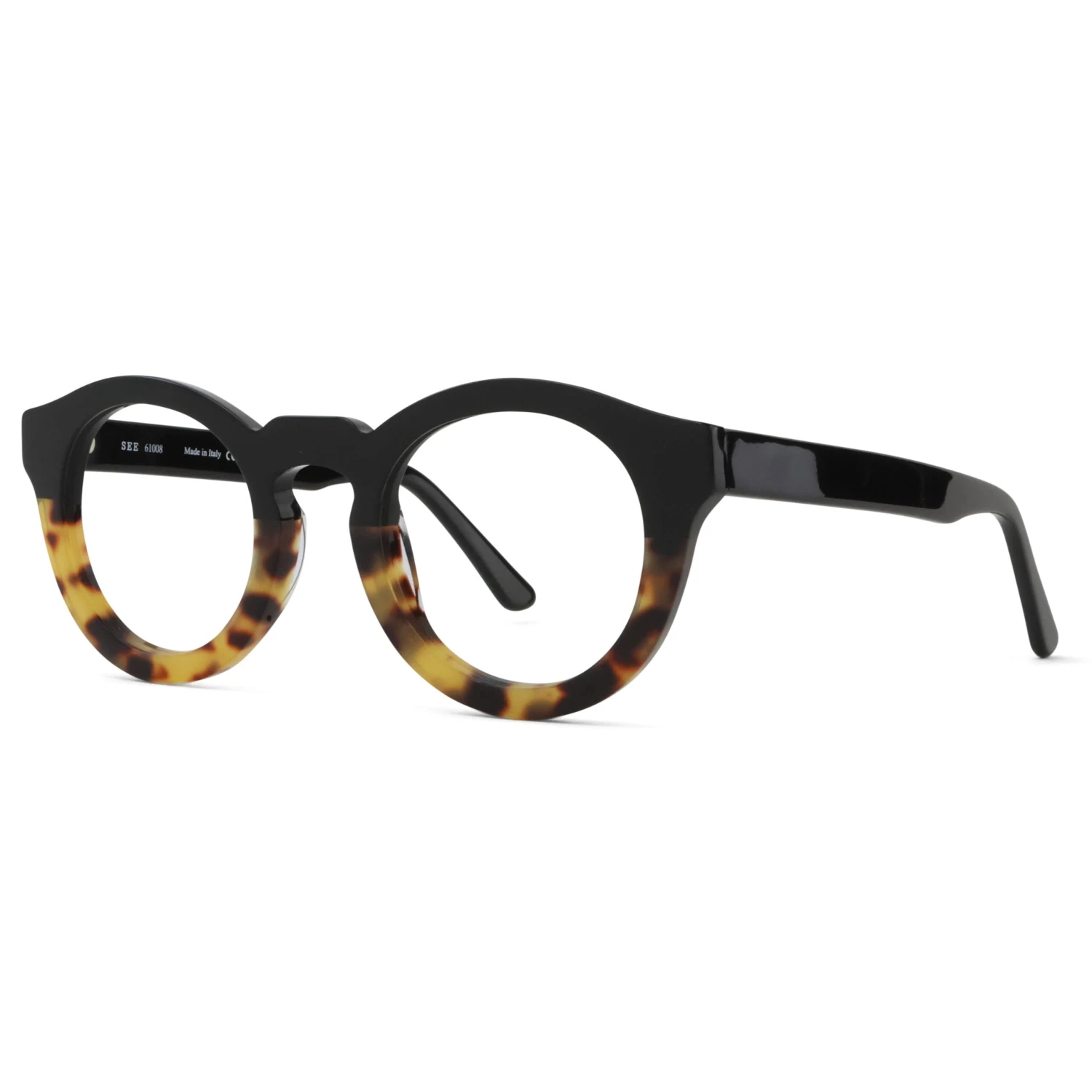 SEE 61008 is a decidedly retro, round frame with subtle colorblocked acetate for an added fashion pop.