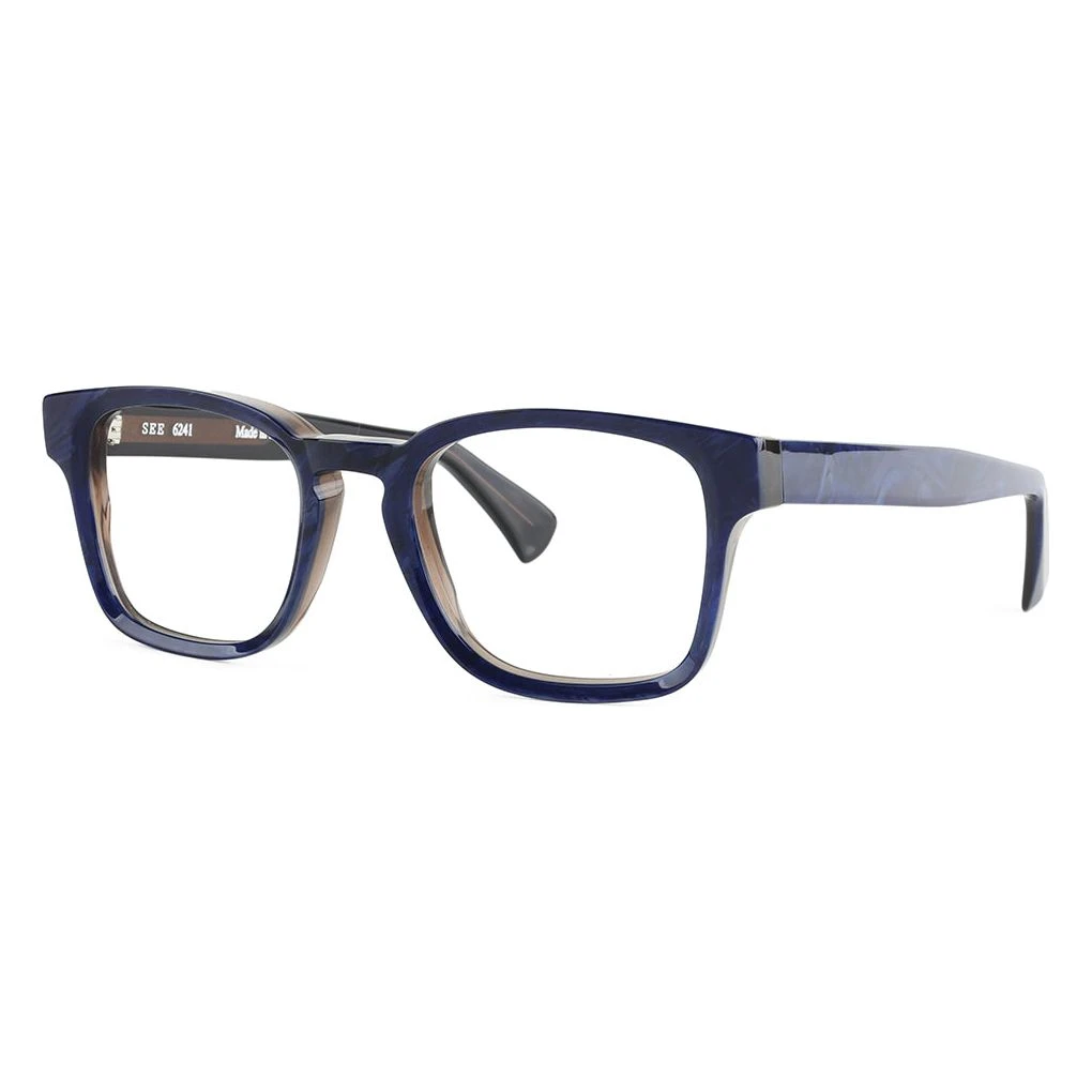 Crafted from super special 10mm acetate, SEE 6241 is a thick and hearty frame, featuring a classic shape done up with details. The keyhole bridge, beveled eye rim, and laminate layering on two of the colorways bring visual interest. This is one rectangular frame that isn’t a square (get it?).