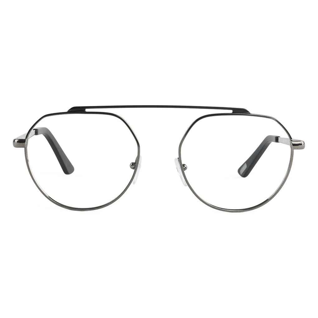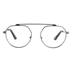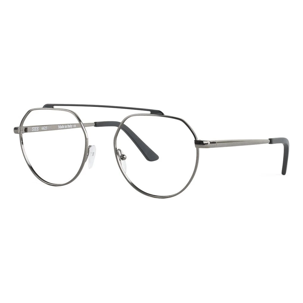An unusual floating bridge and angular shape are the hallmarks of this extraordinary metal style. Contrasting temple tips and comfy nose pads add to this Italian-made style’s appeal.