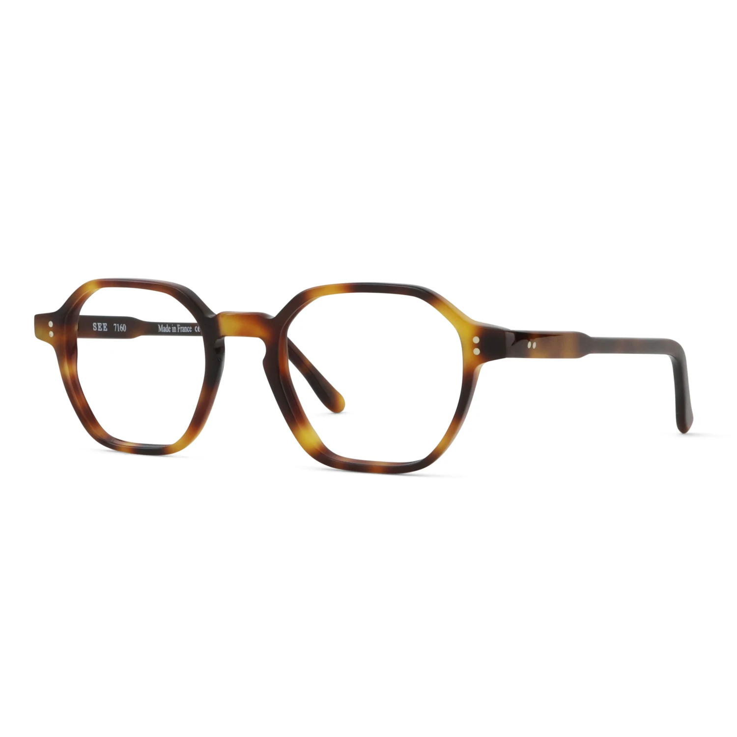 This petite French-made frame boasts ultra-thin and lightweight acetate, complete with a double-rivet detail and beefy 5-barrel hinges.