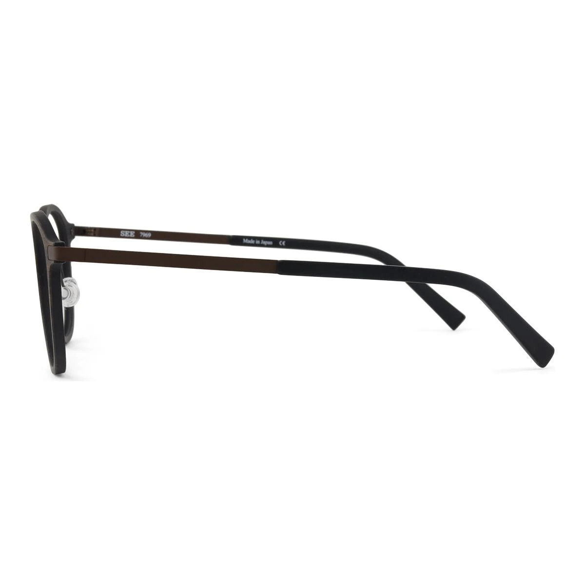 SEE 7969 has been bestowed on us from the Land of the Rising Sun to grace the faces of kind folks like yourself. The delicate layers of Japanese peach wood and carbon fiber, finished off with sturdy titanium temples, make this frame a hard one to pass up.