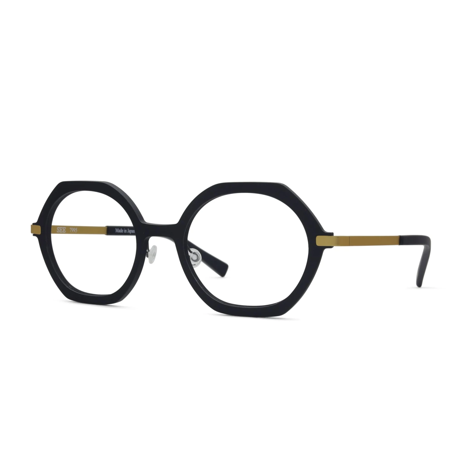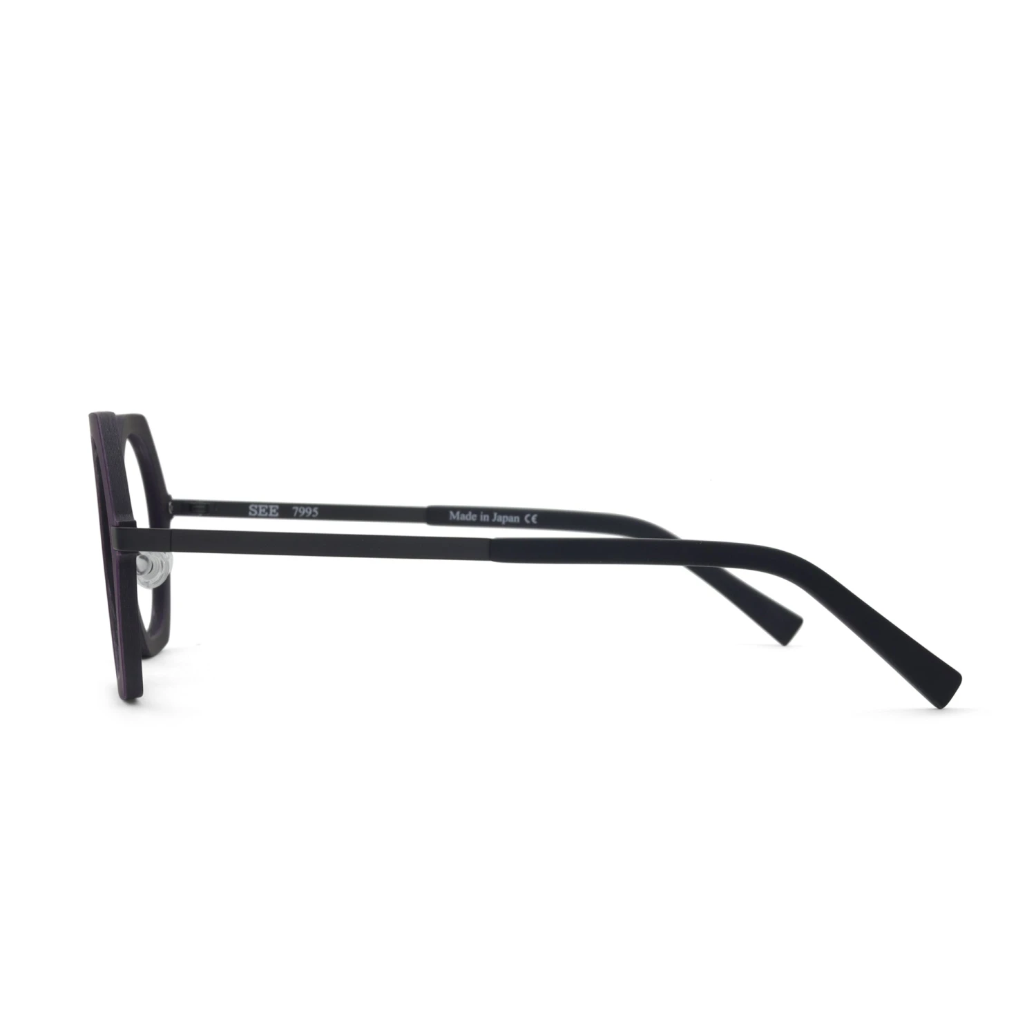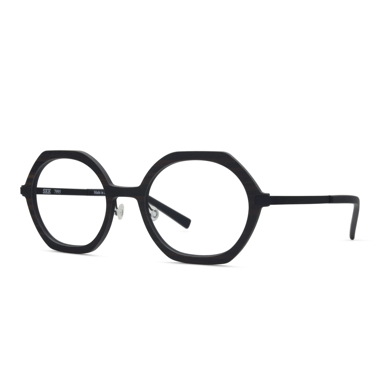 SEE 7995 hails from Japan and boasts 24-layers of carbon fiber and peachwood goodness. The funky shape paired with lightweight titanium finishes make this frame a surefire add to any eyewear wardrobe.