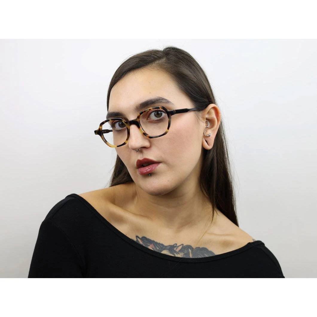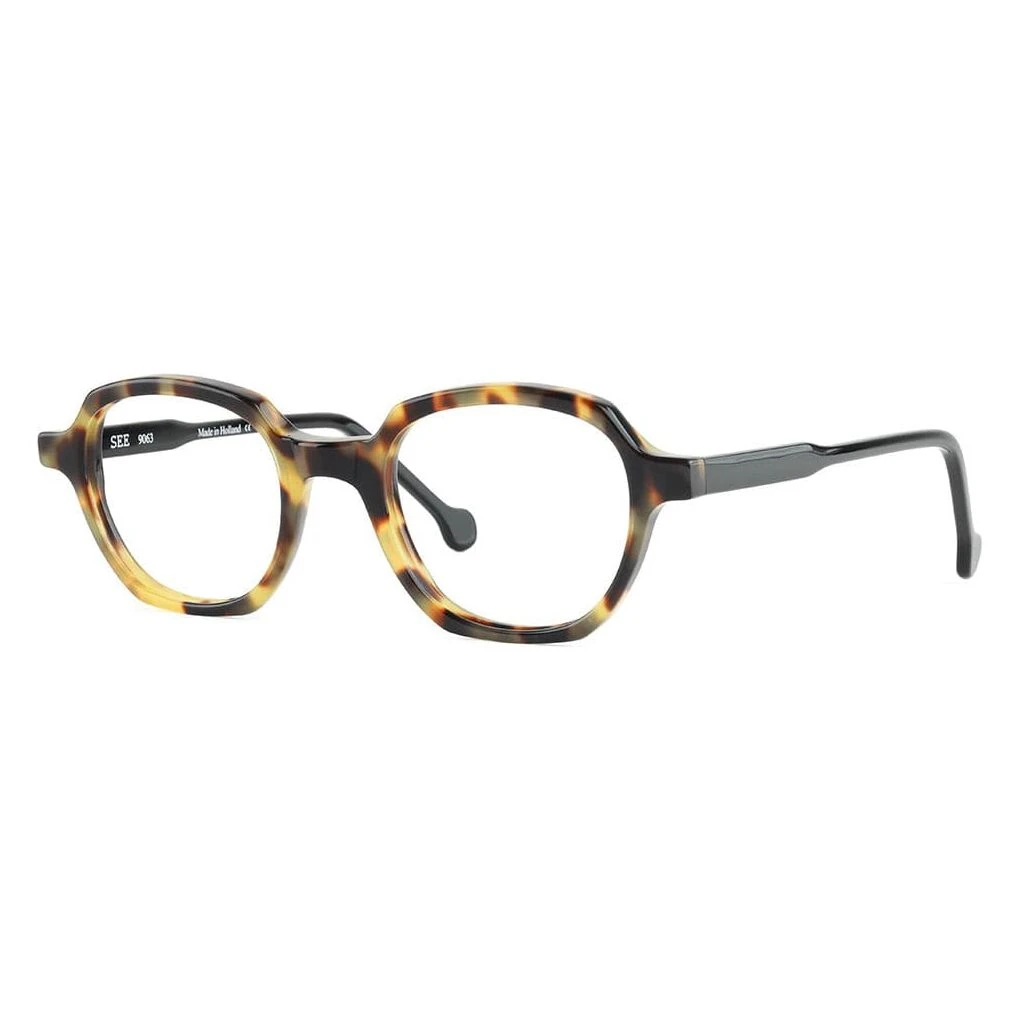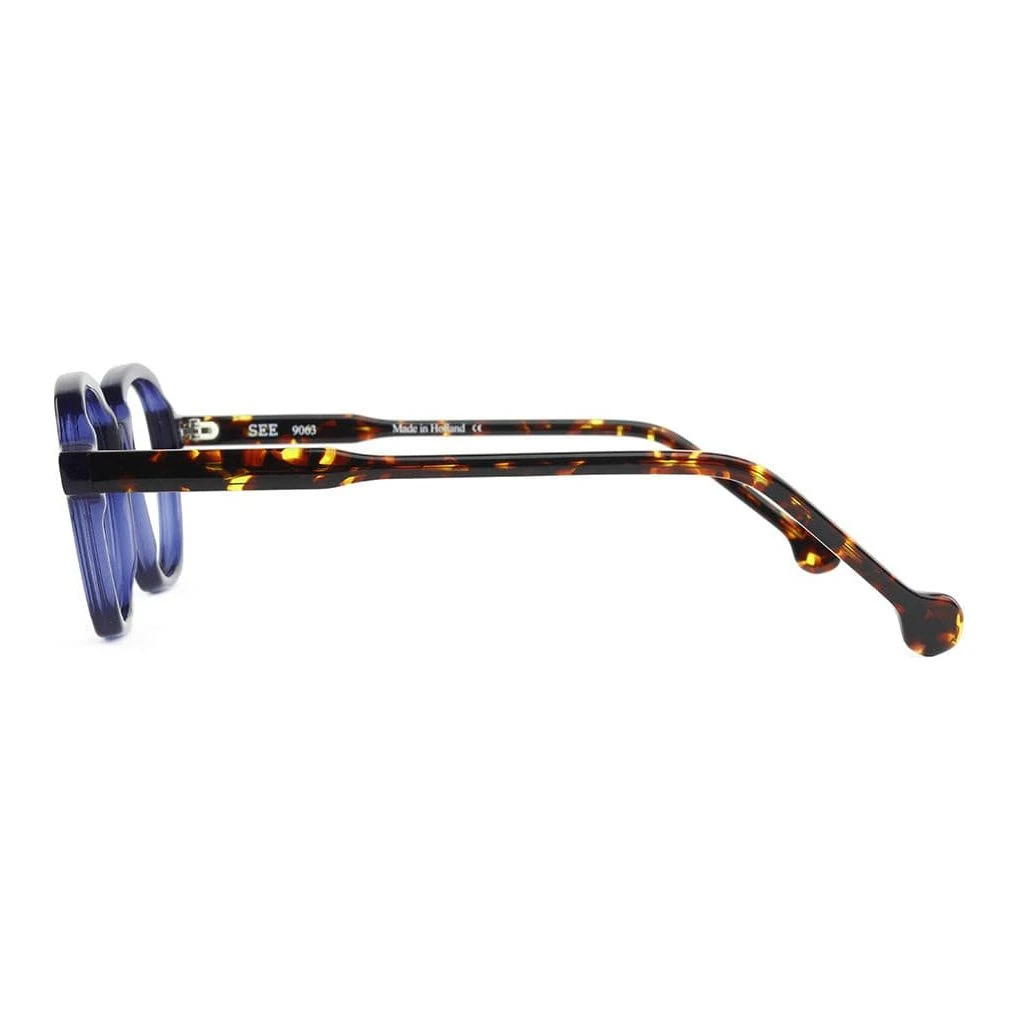 Delicate and dainty, what SEE 9063 lacks in “heft” makes up for it in style. Handcrafted in Holland using the finest Italian acetate, this distinctive eyeglass features an interesting geometric shape and contrasting temples.