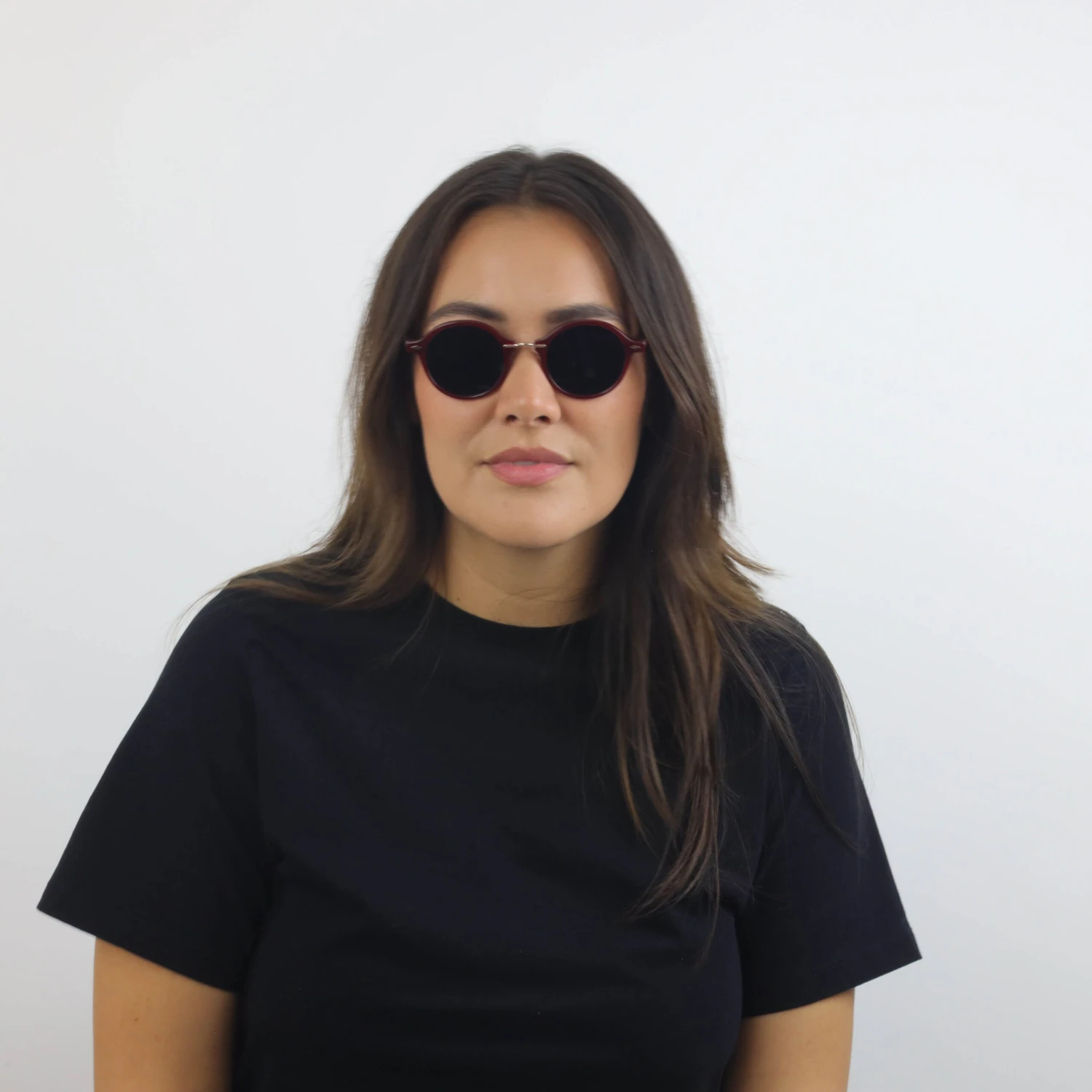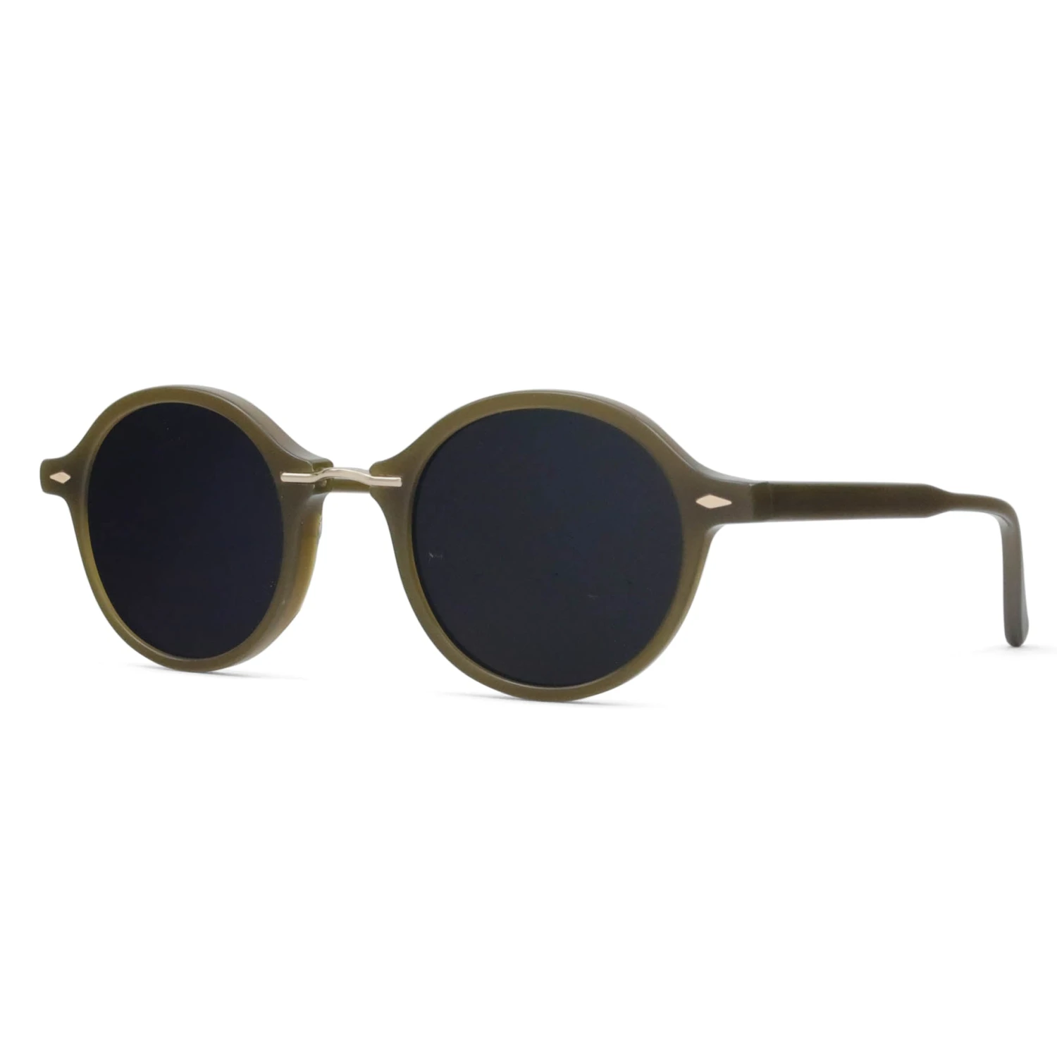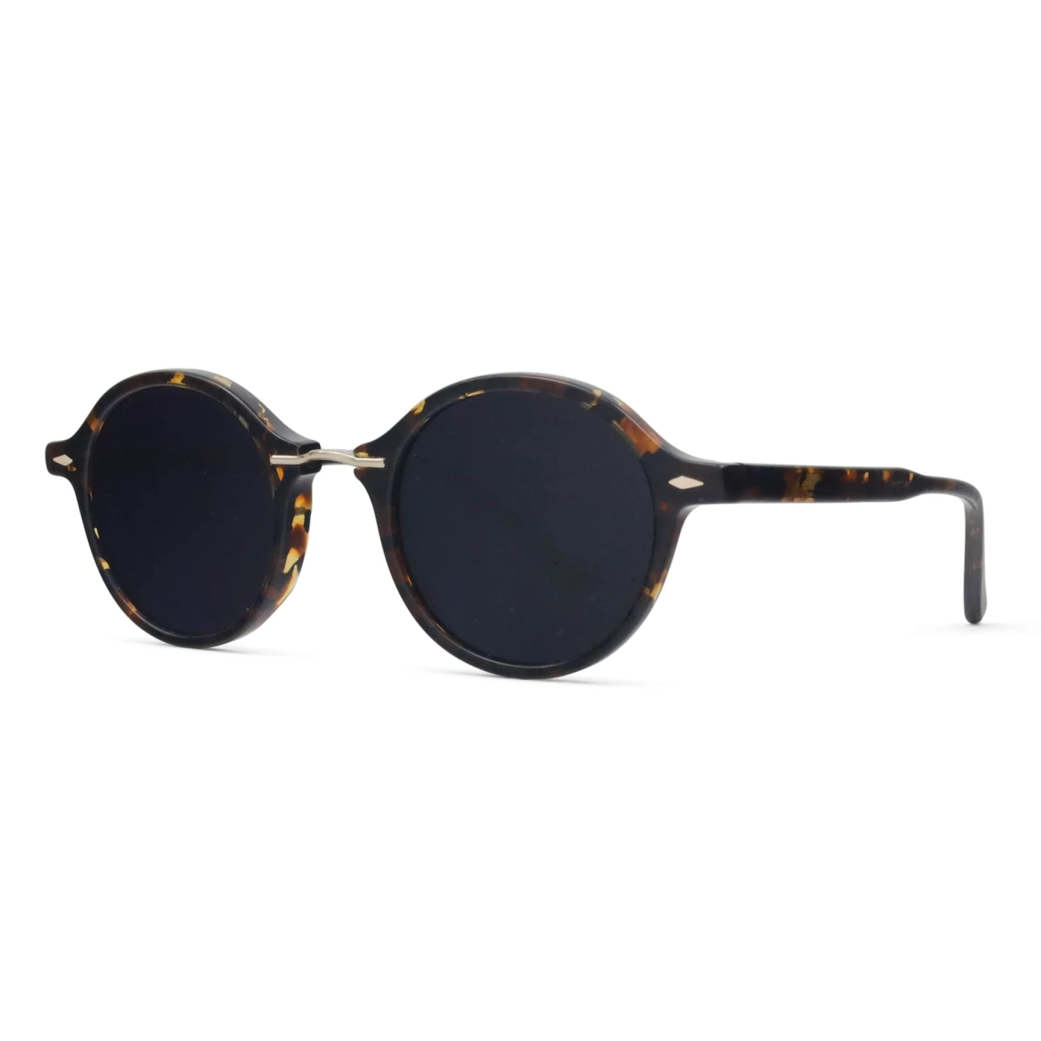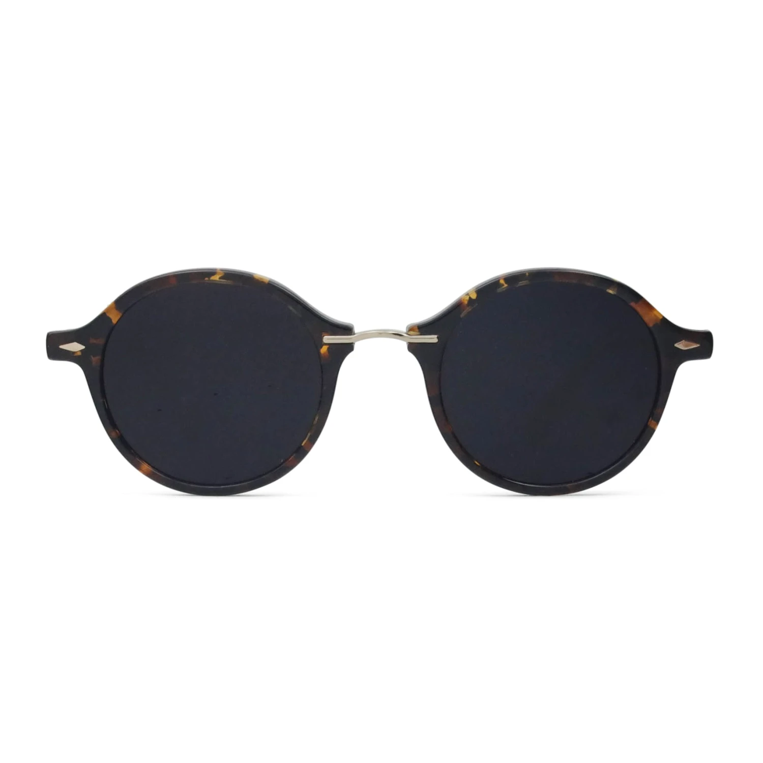 This funky sunglass meshes a rich, fall palette with dainty details, like diamond-shaped rivets and a sleek metal bridge.