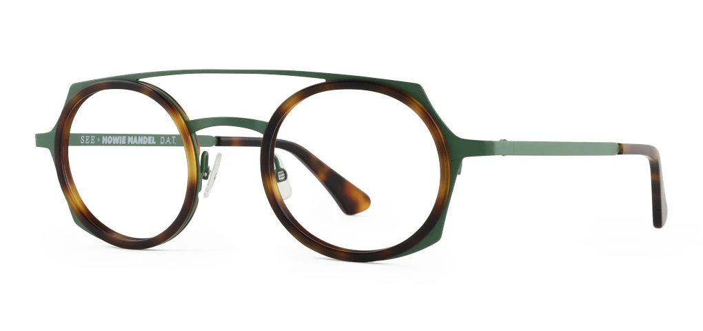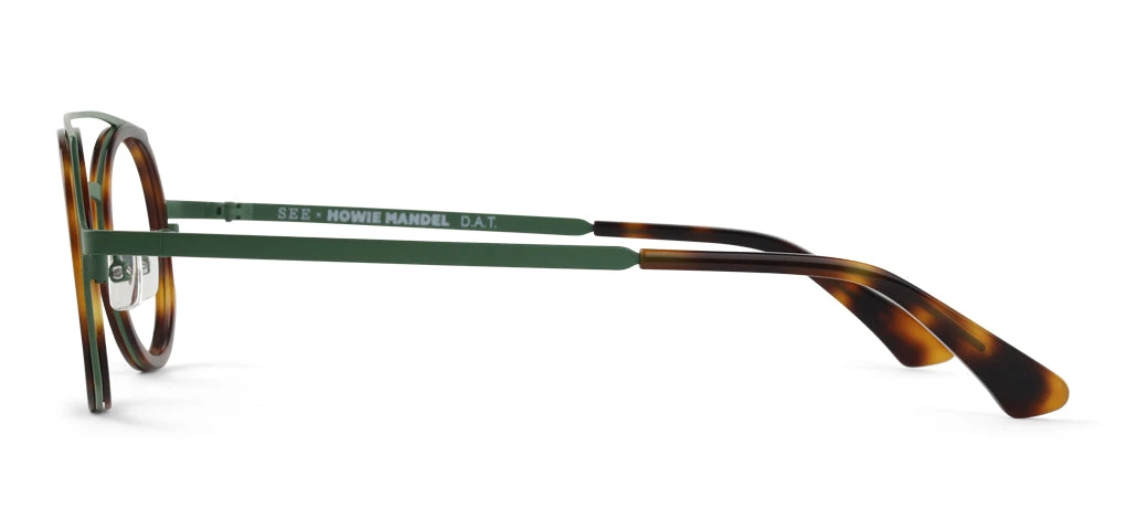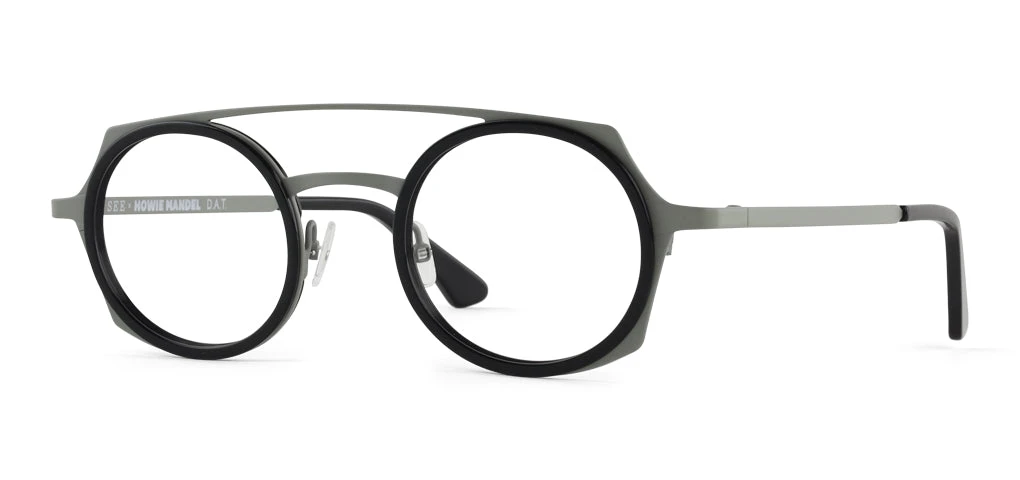 D.A.T. – From our latest SEE × Howie Mandel collection, this funky rounded navigator boasts an eclectic mix of glossy acetate and custom-colored matte-finish metal. Looking for more reasons to love SEE D.A.T.? Check out that super rad double brow bar and artfully shaped angled corner detail. It’s not hard to see why this frame is Howie’s new go-to style.