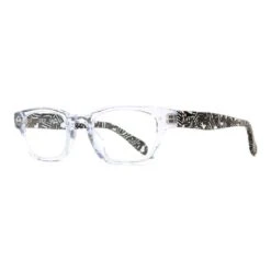 The George reader comes in an on-trend palette of translucents, featuring a keyhole bridge and uber-cool rivet details.